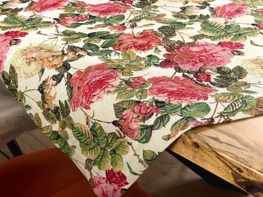 Obrus gobelinowy w róże – elegancka dekoracja stołu
