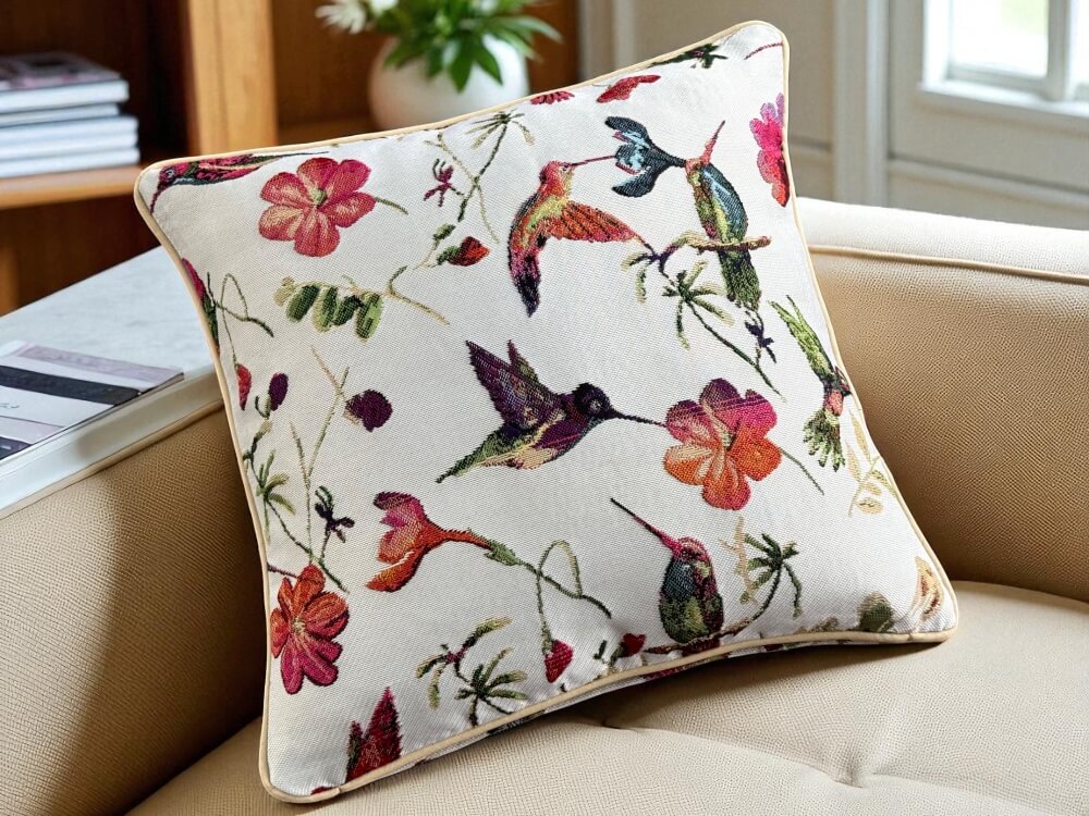 Poszewka gobelinowa Rajski Ptak 40×40 cm – dekoracyjna poszewka z kolibrami