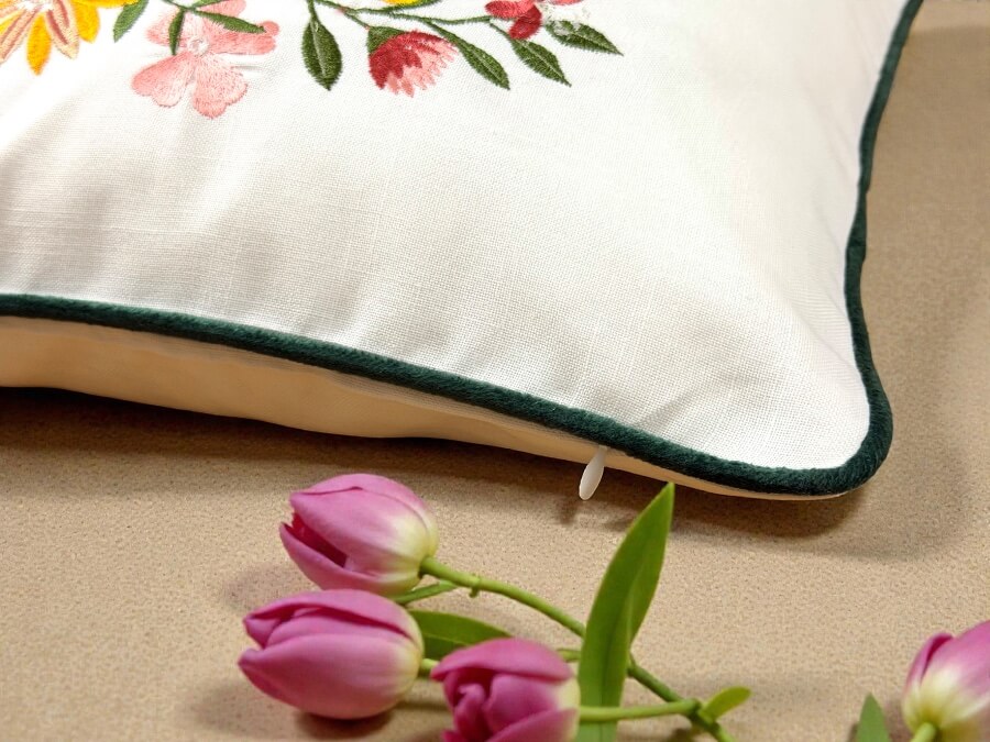 - Wykończenie: lamówka nadaje elegancką ramę i podkreśla kształt poduszki