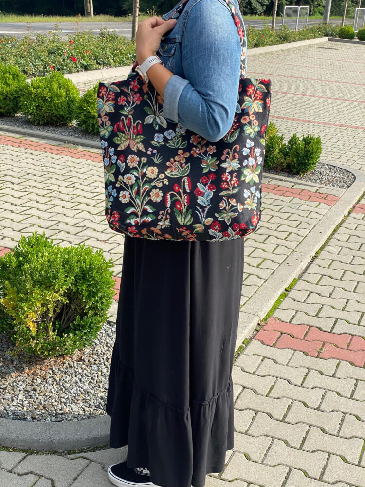 Torba gobelinowa w kwiaty – klasyczny wzór i codzienna funkcjonalność