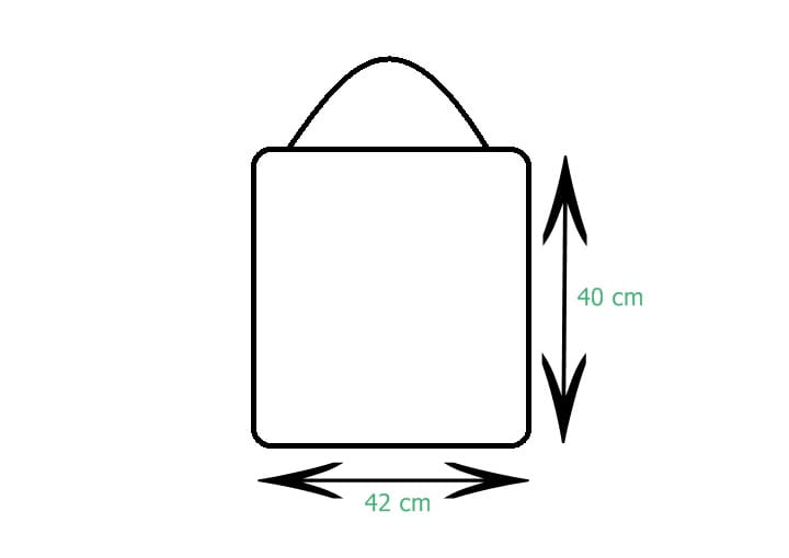 Torba została wykonana z grubej tkaniny gobelinowej, co zapewnia trwałość i odporność na zużycie. Format 42 × 40 cm pozwala wygodnie przenosić zakupy, dokumenty lub rzeczy osobiste.