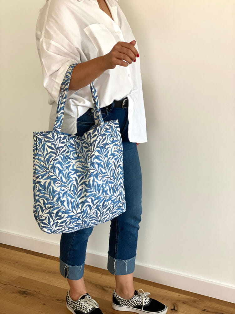 Torba gobelinowa w niebieskie liście – klasyczny wzór i codzienna funkcjonalność