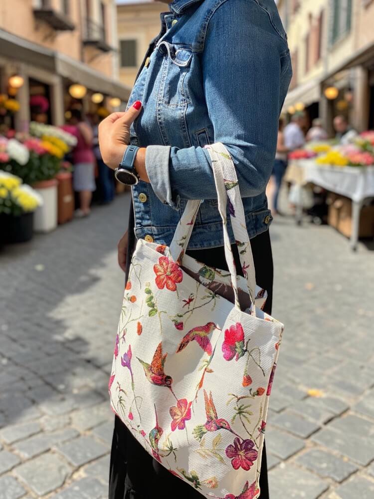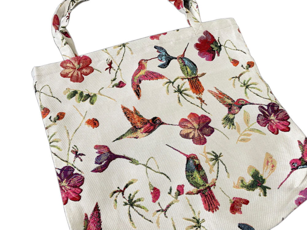 Torba gobelinowa z kolibrami i kwiatami – dekoracyjny wzór i codzienna funkcjonalność